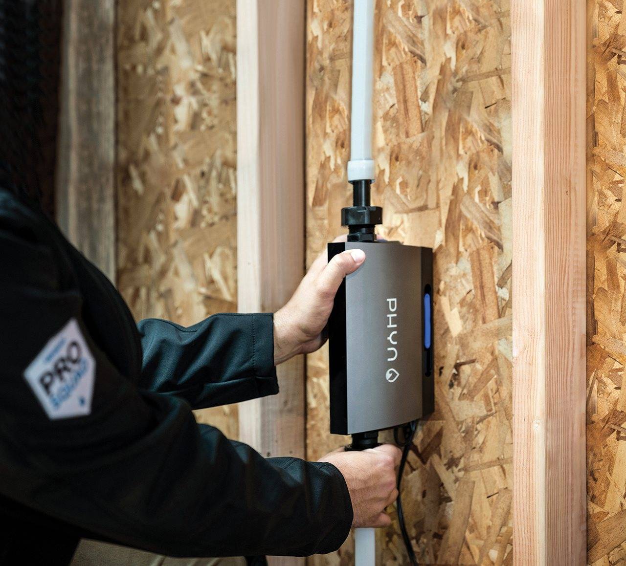 Even small water leaks can cause big damage, and if you’re not living in a home, that damage can multiply quickly. From leaks that cause terrible mold growth to burst pipes that flood entire floors, it’s easy to see why water is a top concern for owners of vacation home while away. One simple solution is the Phyn Plus: Smart water assistant + shutoff. This intelligent device is installed on the main water line after the meter by an authorized Uponor Pro Squad team plumbing expert. Once installed, it uses programmed data and learns the home’s water-use habits, so it can proactively detect leaks and water problems in real time.